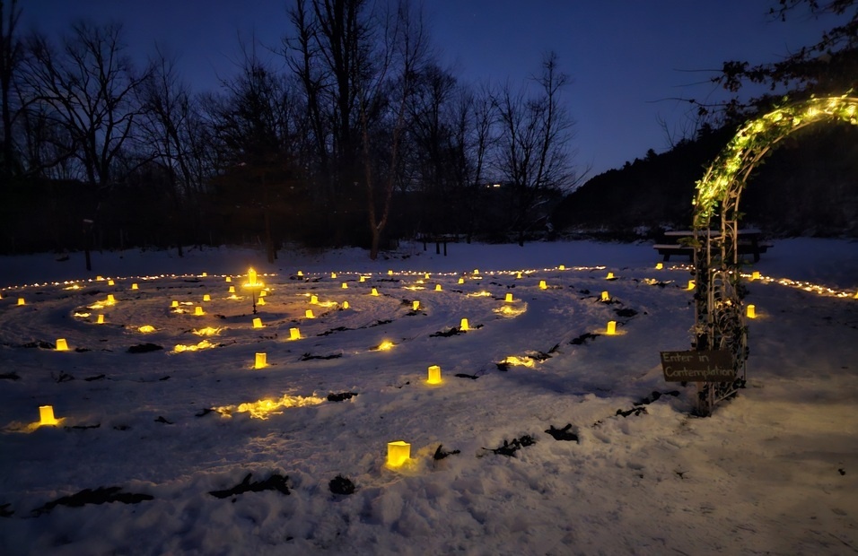 Just before the rush of the busy holiday season, take a moment to slow down and reflect on the changing of seasons, the completion of another year, and the hope of a new one. On the longest night of the year, enjoy a few minutes of peace during a short walk along a path lit by luminaries down to the river and back. The first 100 participants will be able to add a light along the path of our advent spiral to help celebrate the return of longer days.